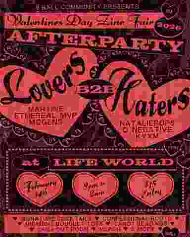 this valentine's day [2.14.26] kiss your crush or exorcise your ex on the dance floor. 8-BALL RADIO presents THE VDAY ZINE FAIR AFTER PARTY: lovers b2b haters [9PM - 2AM at LIFEWORLD]