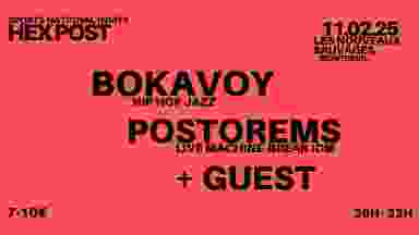 Line up : -Bokavoy : (Greece/ Fr) -Postorems (Fr) Pour les fans de : Aphex Twin, Board of Canada, J Dilla Évenement présenté par Hex Post et Sport National