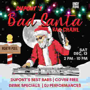 Washington DC, get ready—Bad Santa is back in Dupont Circle on Saturday, December 13th, 2025 for the wildest holiday bar crawl in the city. This isn’t just another night out; it’s Dupont’s biggest holiday party where ugly sweaters, bad Santas, and holiday chaos collide for one unforgettable crawl. Here’s what you can expect: ★ Cover-free access to Dupont’s top bars ★ Exclusive holiday drink specials all night long $4 Light Beer | $5 Santa Shooters | $6 Rail Drinks ★ Festive giveaways, surprises, and photo-worthy moments ★ High-energy vibes and nonstop holiday mischief Featured Bars Zebbies Garden | 1223 Connecticut Ave NW 3rd floor Decades | 1219 Connecticut Ave NW Rewind | 1219 Connecticut Ave NW Public Bar Live | 1214 18th St NW Sauf Haus | 1216 18th St NW Twelve after Twelve | 1212 18th St NW AND MORE TO BE ANNOUNCED  Registration Information When: Saturday December 13, 2025 Time: 2-7pm Where: TBA FREE Birthday Ticket If you have a birthday this winter, we want to celebrate with you! Message us on  Facebook or  Instagram to redeem your FREE birthday ticket while supplies last.