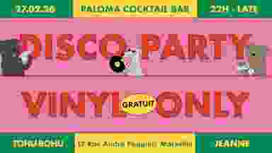 HEY MARSEILLE ! DISCO PARTY · VINYL ONLY · ROUND 2 🤸🏽‍♀️ Vendredi 27 février, le Paloma vous accueille pour une seconde édition toujours 100 % vinyle et 100 % Disco dans toutes ses mutations, contorsions et déviances festives Housey, Italo ou Funky. 🍸 Au bar L’équipe du Paloma vous régale avec sa toute nouvelle carte de cocktails en clin d’œil à vos films préférés (avec ou sans alcool), ainsi que des assiettes à partager et à picorer. 🎧 LINE UP TOHU BOHU "Daytime dance party without music borders" Un joyeux brouhaha festif, porté par des disques généreusement nacrés de soleil et aux parfums suaves des pays chauds. JEANNE « La vie est faite de cycles, entraînés par des événements. » Sa musique en est le reflet, un pont entre mélodies oubliées et exploration trans-musicale. Un voyage où le temps et l’espace se plient au rythme du dancefloor. 📍 Paloma Cocktails Bar 17 rue André Poggioli, 13006 Marseille 🎟️ Entrée gratuite 🕙 22h → fermeture 📀 Disco / House / Vinyl only ⚠️ Pour votre confort et votre sécurité, le Paloma se réserve le droit d’entrée en fonction de la capacité d’accueil.