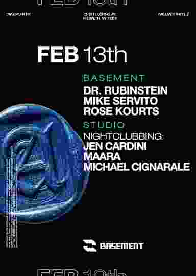 On Friday the 13th, acid reigns supreme in BASEMENT: Dr. Rubinstein headlines alongside Mike Servito and Rose Kourts. For the last decade, Rubinstein has been a beloved force for chaotic good in the underground. A raver at heart, Rubinstein has displayed a singular capacity to intuit exactly what the dancefloor needs, steering her sets into the dark, euphoric heart of the night with complete conviction. This is reflected in her productions; her recent “Rubi’s Acid Spa” and “Take This Pill” are instant-classic entries into the acid techno canon, bristling with raw power and searing 303 leads. Mike Servito needs no introduction. One of NY’s essential voices, Servito’s decades of service behind the decks have given the world one of the best runs since the advent of DJing. Rooted in the essential sounds of Detroit, Chicago and the iconic midwest rave underground, Servito fuses every era of jacking, acid-laced and sleazy dance into a unified whole. Rose Kourts completes the lineup. An unmissable name in NY over the last five years, Rose Kourts is an artist whose elastic range touches both on thundering weight and soaring effervescence. Hewing close to the visionary futurism that birthed techno, Rose Kourts’ sets are liberatory, expansive journeys delivered with an unerring sensibility.