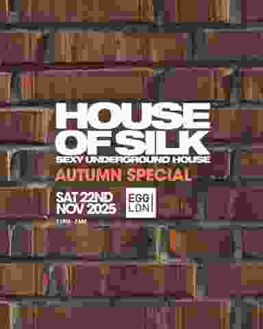 The UK's Premier Event , House of Silk returns back at the EGG for our final even the of the year . We have 3 rooms of music and have hand picked the finest artists for your musical pleasure . Sexy Underground House / UK Garage Funky & Affro house