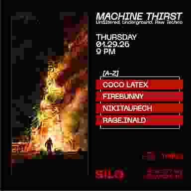 A six-hour, nonstop techno session moving through the full spectrum of groove - from sultry immersive rhythm to driving, hard, raw industrial pressure. Across the night, four experienced DJs deliver deep movement, driving bass, and uncompromising energy, creating a space where light and dark coexist on the dance floor.