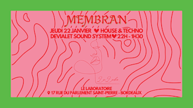 Ce jeudi 22 janvier, les DJ du collectif Membran prennent le contrôle du Laboratoire pour une soirée House, Techno & Groovy, pensée pour un cadre intimiste et une écoute fine.
