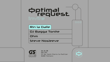 Optimal Request débarque donc à Poitiers, ville dont sont originaires ses membres, et plus particulièrement au GS Club. Pour l'occasion, le collectif invite un artiste en pleine ascension sur la scène techno française : Rin La Dalle !