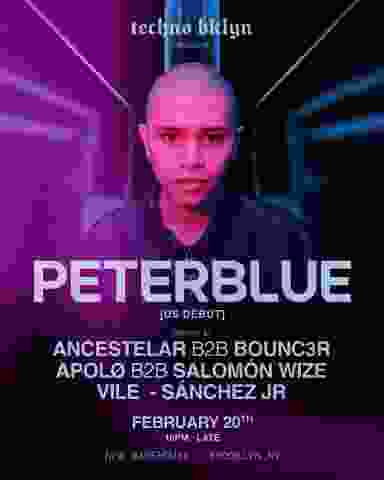 Peter blue one of the most innovative techno DJ currently in the techno scene arrives first time to the USA . Feb 20 at a new massive warehouse with state of the art sound and lights .