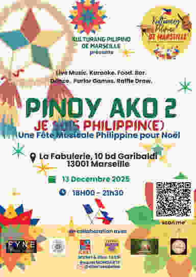 Kulturang Pilipino de Marseille vous invite à une soirée festive célébrant la culture philippine: musique live, stands de spécialités, bonne humeur et tombola. Une immersion chaleureuse et gourmande ouverte à tous.