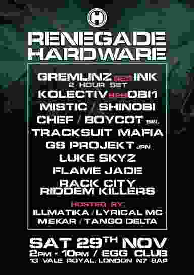 Celebrating 30 years in the game, the legendary DnB brand Renegade Hardware lands at Egg Club with a stacked line-up of generation-spanning artists