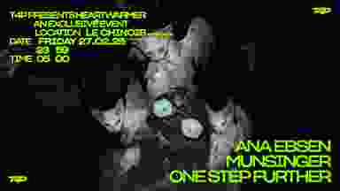 Pour cette première au Chinois, nous accueillons des artistes habitués de nos évènements : One Step Further, aventureux des nuits parisiennes qui a su se faire une place très vite dans le milieu électronique de la capitale. Munsinger, dj et producteur avéré de la scène locale et enfin, notre résident Ana Ebsen que l’on ne présente plus.