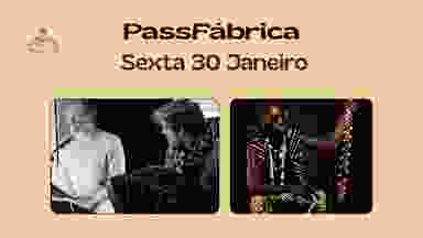 O PassFábrica dá acesso aos seguintes eventos: 21H30 - Vasco Gato & Martín Sued ALGUMA POESIA ARGENTINA Vasco Gato e Martín Sued juntam-se num diálogo intimista de voz e bandoneón em torno de poemas de autores argentinos como Jorge Luis Borges, Alejandra Pizarnik ou Roberto Juarroz. 22H30 - Mbye Ebrima Band Mbye Ebrima, korista, compositor, cantor e contador de história oral, nasceu na Gâmbia numa família djéli, tocadores de kora e reputados conhecedores e divulgadores da história oral mandinga-kaabunké há muitas gerações. A sua entrada na europa deu-se com uma turné por três países (Alemanha, Áustria e Suíça) e 47 cidades com a Mother Africa Circus Company. Em 2015, fixou residência em Portugal, onde ainda hoje reside e trabalha como músico.