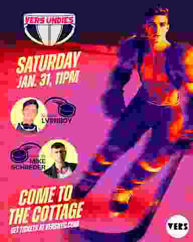 "Will you.. come to my cottage this January? Come to VERS. We’ll have so much fun. It’s so private. No one will know. We could have an hour or even two. Be completely alone... in the darkroom. Together. (with 100 other guys)" Things are going to get HEATED! Strip down, gear up, and get ready to sweat. Get sporty or sport those lucky banana socks! It’s fog, flashing lights, and flirty beats—all night long. What's more fun than dancing around in your undies? Mandatory free clothes check, free shenanigans. Respect the dance floor: no cell phone or camera use.