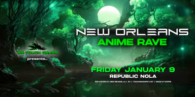 Embark on an extraordinary journey into the heart of anime euphoria at the #WeTouchGrass New Orleans Anime Rave on Friday, January 9! This 21+ event, is more than just a party – it’s a celebration of everything we love about anime, music, and the amazing fans who make it all come to life. What To Expect: 🧑‍🎤 The ultimate cosplay catwalk 💿 Original remixes of your favorite Anime OSTs 🫂 Make new friends 🍹 Anime-inspired cocktails 👯 Dance all night 🌱 An atmosphere fueled by kindness, inclusivity, and a shared love for anime culture Back by popular demand, this spectacle promises an unforgettable night filled with electrifying anime vibes that will leave you craving more. Dance to the beats of your beloved anime tunes and experience the enchantment of #WeTouchGrass' renowned Anime Raves, celebrated across North America and Europe by over 80 000 people. All tickets are final sale and non-refundable. LEGAL: By purchasing a ticket, you agree to allow us to contact you for event-related purposes. You can opt-out at any time by contacting us at info@touchgrassent.live. We will protect your information. FINAL SALE. There is no difference between the ticket tiers; buy the lowest ticket tier possible.