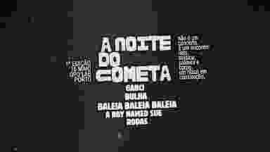 A Noite do Cometa — Capítulo 1 concertos + dj + visuais tudo ligado do início ao fim sem pausas bilhetes a 15€ (+ taxas da plataforma) entras e a música já começou não há intervalos não há momentos mortos uma noite contínua onde tudo se liga Gabci Bulha Baleia Baleia Baleia A Boy Named Sue 16 maio Ópó Lab, Porto últimos bilhetes a 15€ + taxas a 1 de abril sobe para 18€ + taxas capacidade limitada