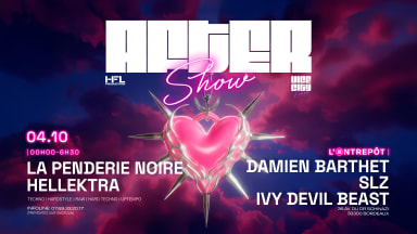 AFTER SHOW w/ LA PENDERIE NOIRE / HELLEKTRA / DAMIEN BARTHET / SLZ / IVY DEVIL BEAST SAM. 04/10 // 00h00 - 06h30 📍L’ENTREPÔT - 36 av. du Dr Schinazi, 33300 Bordeaux ______________ 𝗟𝗜𝗡𝗘-𝗨𝗣 : LA PENDERIE NOIRE
