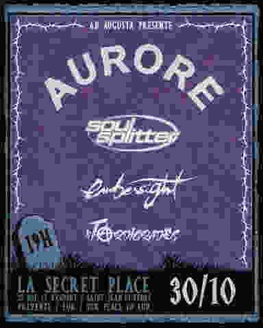 AD AUGUSTA présente AURORE + SOUL SPLITTER + EMBERSIGHT + LES TARDIGRADES - Jeudi 30 Octobre 2025 - Ouverture des portes, du bar et du foodtruck à 19h - Prévente 8€ (hors frais de loc) Sur place 10€