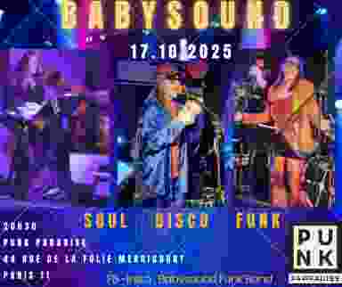 Babysound Funky Dance Party, groove garanti avec nos 2 chanteurs-danseurs Joss et Isa, nos musiciens Vio, Eric, JR, Charly, Vince au son de Maceo PARKER, Joss STONE, Curtis MAYFIELD, Martha HIGH, MARVIN GAYE, Aretha FRANKLIN, James BROWN, Michael JACKSON, Kool and the Gang, Earth Wind and Fire, Bruno MARS, LIZZO, BB and the Q Band, ODYSSEY and much more ! BABYSOUND EST NÉ DANS LES ANNÉES 2000 SUITE À LA RENCONTRE DE MUSICIENS PASSIONNÉS DE BLACK MUSIC. JOSE, LE FONDATEUR, EST ISSU DU MOUVEMENT HIP-HOP FUNKSTYLE ET A GRANDI AVEC LA TAMLA MOTOWN, ATLANTIC RECORDS ET AUTRES LABELS SOUL. AVEC BABYSOUND, JOSE DÉVELOPPE UN RÉPERTOIRE 100 % LIVE, TOUT D’ABORD AVEC « LA VÉRITABLE HISTOIRE DE LA MUSIQUE AFRO-AMERICAINE» : SHOW-CONCERT MÊLANT CHANT ET DANSE. CE SPECTACLE EST JOUÉ A PRÈS DE 300 REPRISES : GROS PLATEAUX, SOIRÉES PRIVÉES, COMITÉS DES FÊTES, COMITÉS D’ENTREPRISES….