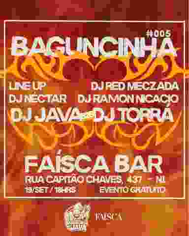 Fala meus bagunceires, cês tão bom? É com muito prazer que anunciamos a edição #005 da nossa Baguncinha do Java e dessa vez com DJs formados diretamente na oficina de Sonorização e Discotecagem da Escola Popular de Artes da UFRRJ Nova Iguaçu. Em parceria com o Faísca Bar, nosso evento promete tocar fogo na noite do dia 19/09 🔥💥