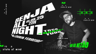 05/09/25, a partir das 22h BENJA ALL NIGHT - Benjamin Ferreira toca (quase) tudo, a noite toda! Local: BAR DO NETÃO (Rua Augusta, 584) Mais infos: @djbenjaminferreira @bardonetao