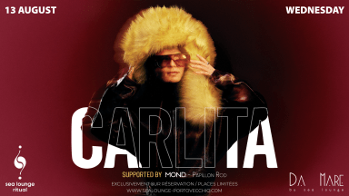 Véritable star de la scène électronique internationale, Carlita enchaîne les performances sur les scènes les plus iconiques du monde : Coachella, Burning Man, Circoloco, Tomorrowland… Elle a récemment créé l’événement avec un DJ set spectaculaire depuis le sommet de la Tour Eiffel.