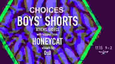 Hey CHOICES fam, on November 15 we’re inviting you to ✨loosen up✨ with a rare Friday night edition of CHOICES at the Denver Eagle. This time around we’re beyond excited to announce Athens-based DJ + production duo, Boys’ Shorts, as our special guests!