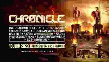 CHRONICLE Open air Festival 2023 Cette année, nous sommes heureux de vous retrouver pour une édition mémorable. Le 10 juin 2023, nous célèbrerons ensemble les 5 ans de Chronicle aux Arènes de Béziers ! Pour la toute première fois en France, venez vivre l’expérience inoubliable d’un festival hardmusic dans des Arènes. Un lieu spectaculaire pour une date unique ! En plein cœur de la ville, cette édition en plein air rassemblera les meilleurs artistes du moment. Une programmation épique vous attend dans ce cadre exceptionnel pour honorer la hardmusic. Pandemic présente : CHRONICLE "Open Air" 14H00 – 23H00 LINE UP : ▪Dr. Peacock vs Le Bask ▪Spitnoise ▪F.Noize vs Sakyra ▪Russian Village Boys ▪Spice Up! (Vortek's & Teksa) ▪Protokseed vs FLKN ▪Sköne ▪El Desperado vs Hidup ▪Damien RK ▪Cosy Nghtmre www.pandemic-events.com