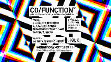 Co/Function is a monthly event series focused on live electronic music & visuals. The audience is invited to experience an exercise in experimental improvisation that is rarely seen in the dance music world. Creators & conductors Taboh & TJ McAu curate a constantly rotating cast of up to 8 musicians to collaborate & improvise live. The participants are sometimes familiar friends, or have perhaps never met. Either way, there is no rehearsal. The individual artists are linked together by a common midi clock, using DJ mixers to blend together synths, drum machines, traditional instruments and their own vocals. Setting up in the center of the main room at H0l0, they navigate with their eyes and ears through a sonic landscape of bleeps, bloops, booms & baps. Riding the waves of euphoric beat, they explore the eternal loop, bringing life to each new song in the moment, along with the movement of the crowd. The nature of the artistic approach is informed by jazz greats & jam bands, all ran through the filter of our shared electronic music language.