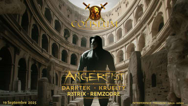 ⚔️ COLISEUM x INTERFERENCE ⚔️ Le 19 Septembre 2025, COLISEUM pose ses valises pour la première fois à Toulouse pour une édition qui s'annonce d'ores et déjà hors normes, puisque nous aurons le plaisir d'accueillir la légende ANGERFIST. Pour l'accompagner, KRUELTY, DARKTEK, REMZCORE et R3TRIX pour une nuit à hauts bpm ! ⚔️ ⚔️ LINE UP ⚔️ ⚔️ ANGERFIST ⚔️ KRUELTY ⚔️ REMZCORE ⚔️ DARKTEK ⚔️ R3TRIX ⚔️ TIMETABLE ⚔️ 23:59 - 01:30 : R3TRIX 01:30 - 02:30 : KRUELTY 02:30 - 03:30 : ANGERFIST 03:30 - 05:00 : DARKTEK 05:00 - 06:00 : REMZCORE _________________________________ ☰ INFOS PRATIQUES LIEU : INTERFERENCE ADRESSE : 56 Rte de Lavaur, 31130 Balma OUVERTURE/FERMETURE : 23H59 / 06H00 TRANSPORT EN COMMUN : METRO A - Balma-Gramont FUMOIR EXTERIEUR XXL. CARTE D'IDENTITE OBLIGATOIRE. EVENEMENT INTERDIT AUX MINEURS. LA DIRECTION SE RESERVE LE DROIT D'ENTREE. RESPECT, AMOUR ET BIENVEILLANCE SONT MAÎTRES MOTS.