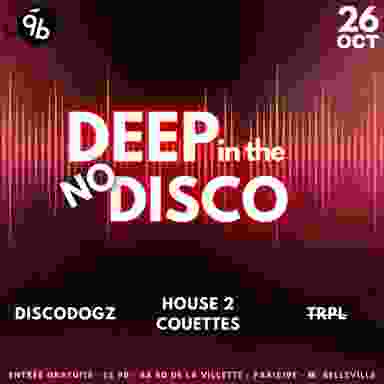 Pour sa 10ème édition, Deep in the (no) Disco célèbre l'anniversaire de son fondateur Petrvs, qui paiera sa tournée ! Au programme, le duo bruxellois trpl en tête d'affiche et les incontournables Discodogz (Prinze & Chien de la Basse), prêts à enflammer le dancefloor. Une soirée explosive en plein Belleville à ne pas manquer ! 🎰INFOS PRATIQUES 🎰 🎟Entrée libre et gratuite 📬68 Boulevard de la Villette, 75019 Paris ⏰21h-2h Ⓜ️Belleville - Colonnel Fabien