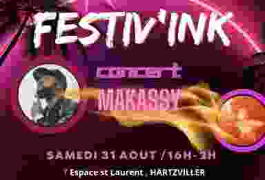 Festiv’ink - 31 août CONCERT MAKASSY Restauration / buvette / concerts / animations jeunes / stand marchands / Cracheurs de feu / flash tatoo Gratuit pour les -14 ans