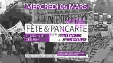 Le 8 mars, c’est la journée internationale des droits des femmes. On fait quoi ? On fait la grève et on va marcher ! Pourquoi ? Pour faire avancer les droits des femmes et bousculer l’ordre patriarcal ! Parce qu’ensemble on est très puissant.e.s ! Nous avons fait un constat : la marche, on y sera. Des cartons, on en a (tellement). Des tasseaux, il nous en reste beaucoup. Des marqueurs et des bombes, ça grouille ! L’idée est simple : vous proposer de vous joindre à nous pour créer les plus belles pancartes avec les meilleures punchlines en prévision de la marche du 8 mars, tout en dansant sur des sets vitaminés de Toutes & Chaos et Effort Collectif. Ce sera le mercredi 6 mars dès 19h : 🖍️ Prépare tes meilleures punchlines 📦 On s’occupe des cartons et du matos 🎨 Peaufine ta ou tes plus belles pancartes 📻 Tout en écoutant du son bouncy, avec Toutes & Chaos et Effort Collectif en dj set Mercredi 6 mars 19h - 00h Entrée libre et gratuite Inscris toi dans l’event Facebook pour l’atelier pancarte ! No Sexism - No Racism - No LGBTQ+ Phobias - No Misogynia