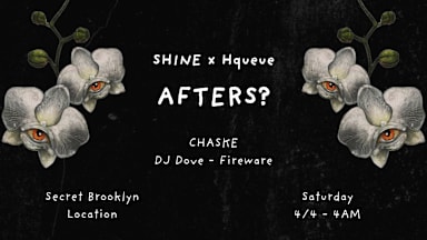 Afterhours Friday>> Saturday April 4th 3:30 AM - ??? Brooklyn Location will be announced at 3am FIREWARE DJ DOVE CHASKE -Capacity is very limited so make sure to secure your tickets in advance.