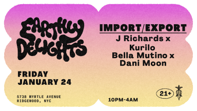 New York's IMPORT/EXPORT touches down at Earthly this January with a stellar local lineup feat. two not-to-be-missed b2bs all night long.