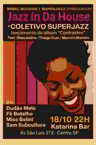 Depois de mais de 5 anos sem se apresentar em São Paulo, o Coletivo Superjazz volta à capital paulista para o lançamento do seu novo álbum Contrastes Vol.1. E para isso o Superjazz se uniu a Rebels Sounds e criou a festa Jazz in da House. A primeira edição será no Katarina Bar e contará com grandes musicos e Djs convidados e convidadas. Os Djs Dudão Melo, criador do Coletivo Superjazz e Samuel Subcultura, criador da Rebels Sounds convidaram para essa primeira edição as Djs Fê Botelho e Miss Belini e os músicos BIca Tocalino no trombone, Marcelo Monteiro no sax e flauta e Thiago Duar na guitarra. Se prepare para ouvir um jazz como você nunca ouviu antes. O Jazz é o pai da dance music moderna. Sua influência vai da Funk Disco ao Hip Hop, da House Music às batidas quebradas e eletrônicas. O Coletivo Superjazz se propõe a fazer uma música viva, convidando músicos e DJs para tocarem juntos. Com a proposta de trazer uma energia diferente para a dance floor, o projeto Jazz in da House coloca DJs e músicos lado a lado, dividindo a pista de dança com o público, trazendo toda a diversidade da dance music contemporânea. Jazz in da House | Katarina Bar | 22h Djs Dudão Melo, Fê Botelho, Miss Belini e Samuel Subcultura Coletivo Superjazz convida BIca Tocalino, Dudão Melo, Marcelo Monteiro e Thiago Duar na guitarra