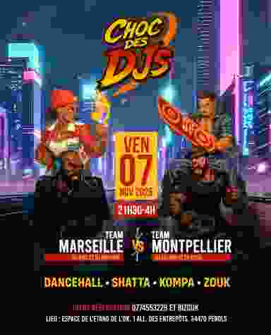 Préparez-vous pour une soirée exceptionnelle où les DJs de Marseille et Montpellier s’affrontent pour enflammer la piste !
