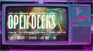 CHEZ GLORY, la résidence d'été du LIEBE, évent mensuel, revient en format familiale, hebdomadaire, chaque jeudi, dans un nouveau lieu pour LES JEUDIS DE CHEZ GLORY Gratuit avec ton pass à récupérer au LIEBE, ou 10€ all night long, lis bien les conditions plus bas. Chaque jeudi de la Dark Disco, de la house à la Techno Indus. 〰〰〰〰〰〰〰〰〰〰〰〰〰〰〰〰〰 JEUDI 24/11 : Les Jeudis de Chez Glory invite Open Decks OPEN DECKS // 👥 Facebook : facebook.com/OpenDecksParis 💽 Soundcloud : soundcloud.com/open-decks-paris 🖼 Instagram : instagram.com/open.decks/ ℹ️ Consulter notre Charte : tinyurl.com/od-charte 〰〰〰〰〰〰〰〰〰〰〰〰〰〰〰〰〰 LES JEUDIS DE CHEZ GLORY // - Chaque jeudi - 21:00 - 05:00 - À 21:00 de la Dark Disco et de la House - Dès 01:00 de la Techno - Gratuit all night long avec ton pass à récupérer au LIEBE* - 10€ all night long sans ton pass* *1 pass par personne, pass à récupérer aux horaires d'ouverture du resto bar LIEBE - https://www.facebook.com/liebebarelectro . A l'entrée de la soirée du laissera ton prénom, nom et email. 〰〰〰〰〰〰〰〰〰〰〰〰〰〰〰〰〰 INFOS PRRATIQUES // ◆ Horaire: 21h/05h ◆ 43, rue de la haie Coq, 93300 Aubervilliers ◆ Métro 12 : AIMÉ CESAIRE ◆ BUS 45 : LUCIEN LEFRANC ◆ VELIB : Madeleine Vionnet (33019) 🧥 Vestiaire 💧 Maxi BAR ❤ Espace RDR en auto-gestion ◆ Billetterie : https://shotgun.live/fr/events/les-jeudis-de-chez-glory-invite-open-decks ◆ Interdit au moins de 18 ans