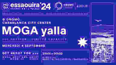 Join us for the MOGA YALLA Event on September 4th at Onomo Maârif in Casablanca, kicking off at 9 PM, as we celebrate the festival’s return to Morocco ✨ ► connect with the Tribe ► Meet & greet with the organizers ► DJ Sets by Maou, Retro Cassetta and Whoskenza. Don’t miss this opportunity to connect with the #MOGATribe and gear up for the much-anticipated #MOGAEssa24 ♡ Entry begins at 9 PM and is subject to capacity from 10PM! ⚠️