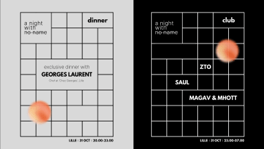 Special Halloween Edition : musique, décoration et atmosphère adaptées. Système son Funktion One & light show immersif par Analog Mind. Lieu secret à 18' de Lille Flandres. Service de navettes disponible pour faire la fête en toute sécurité. _______________ DINNER / 20H-23H Menu en 4 temps imaginé et exécuté par Georges Laurent, chef de "Chez Georges" (ex Epicé) à Lille. Accord mets & vins en option. 60 places assises. CLUB / 23H-7H Nous recevons dans notre booth ZTO, Saul, Magav & Mhott. L'entrée se fait de 23H à 1H exclusivement : portes fermées après, pour respecter les artistes et la progression de la soirée. _______________ FONCTIONNEMENT DE LA BILLETERIE La vente se déroulera en 3 vagues, ne prenant pas en compte la quantité de billets vendus mais le timing jusqu'à l'événement : - 1st wave : du 1er au 7 octobre ⎮ 15€ (+frais) - 2nd wave : du 8 au 21 octobre ⎮ 20€ (+frais) - last call : du 22 au 31 Octobre ⎮ 25€ (+frais) Ce système permet aux personnes qui nous soutiennent de participer à nos événements à moindre coût, sans limite de places.