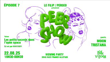 Bienvenu·e·s au PEEP SHOW, la Viewing Party de DRAG RACE FRANCE ALL STARS signée Le Filip et Perseo ! 🌟