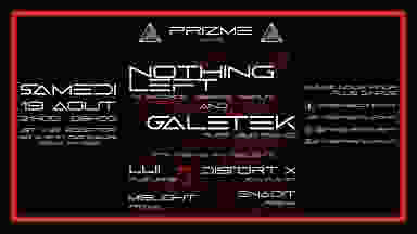 Résident émérite du collectif Platurne, LUI est grandement influencé par les sonorités brutes et groovy de la Techno des 90’s. Son style oscille entre Hard Groove, Hard Trance et Hard Techno toujours avec la même intention : réveiller par la musique l'instinct primitif et tribal qui sommeille en chacun de nous. Il y aura un air de Platurne dans le multivers de Prizme ! 🪐