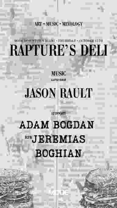We're back! Thursday, October 17th, Rapture’s Deli returns to Mode! 🥁 . 🤩 We’re excited to welcome back JASON RAULT for another unforgettable night, alongside our resident selectors! This edition also features a special b2b from ADAM BOGDAN and JEREMIAS for the first time ever. Lineup will be completed by our resident BOGHIAN. . Free RSVP before 12 .