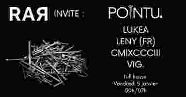 Pointu. est de retour pour une 3ème édition en mode club ! Rar et le full house nous font confiance pour retourner le dancefloor avec Lukea pour sa dernière date en France avant sa tournée en Asie ainsi que Leny pour un gros set deep tech !