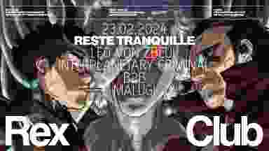 Reste Tranquille, c'est un cri d'amour aux clubs, à la nuit qui suinte et aux voitures de course. Gardez les bras bien à l’intérieur de l’habitacle, Leo Von Zbeul et Interplanetrary Criminal B2B Malugi en approche pour votre prochain film à sensation du vendredi soir. Voici le pitch : « les deux frères ennemis se retrouvent pour la confrontation finale, leur combat ne pourra malheureusement en laisser qu’un seul en vie. A moins que Leo Von Zbeul, terrible chimère cybernétique sous contrôle des corporations, ne leur laisse autre choix que de s’allier. » Aucune autorisation parentale ne sera demandée à l’entrée. Restez tranquilles.