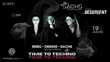 Mais uma edição da TIME TO TECHNO e dessa vez, a SACHS UP convidou a DESORIENT, renomada festa de Curitiba que vem fazendo história nas noites de techno curitibanas, essa collab promete proporcionar uma viagem inesquecível do techno ao hard techno. Mais uma noite épica pra nossa conta!!