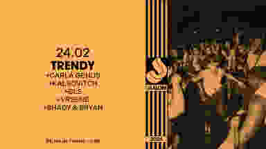 🪩 Trendy — CARLA GENUS • GLS • KALSOVITCH • VRSENE • SHADY & BRYAN 📅 Samedi 24 février ⏱️ Minuit — 6h 📍 Slalom : 84, rue de Trévise — Lille 🎫