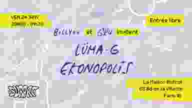 Billy++ : 20H - 21H30 Luma G : 21H30 - 22H45 Ekonopolis : 22H45 - 00H Gru : 00H - 1H15 b2b : 1H15 - 1H30