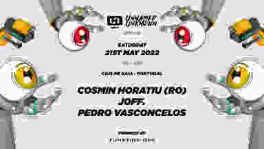Aftermovie from our last event: https://youtu.be/kVPwwZk-c3Q EN: Portuguese imprint Unnamed & Unknown is making its mark at the forefront of cutting underground Tech House globally. Rising to prominence in recent years with the support of many of the industry’s leading names including Marco Carola, Paco Osuna, Waff, Yaya, Stefano Noferini, Nicole Moudaber, Chelina Manuhutu among others, Unnamed & Unknown now brings back its eagerly anticipated label showcase series for 2022. Nestled in the heart of the country’s Port Wine region, Vila Nova de Gaia, Unnamed & Unknown’s first party of the year sees label frontman Pedro Vasconcelos feature alongside the romanian Cosmin Horatiu and JOFF. You can expect a steady flow of ultimately danceable Deep and Tech House flavours from end to end, sampling cuts from the label and selected tastemakers on a robust Funktion-One soundsystem within an intimate club space laced with subtle production value and ample dancefloor space. PT: A Portuguesa Unnamed & Unknown está a deixar a sua marca na dianteira da cultura underground do tech house à escala global. Ascendendo a um maior destaque nos últimos anos com o apoio de muitos nomes principais na indústria como Marco Carola, Paco Osuna, Waff, Yaya, Stefano Noferini, Nicole Moudaber, Chelina Manuhutu entre outros, a Unnamed & Unknown traz agora de volta a sua ansiosamente antecipada série de exibições da editora para 2022. Acolhida no coração da região de Vinho do Porto do País, Vila Nova de Gaia, a primeira festa do ano da Unnamed & Unknown vai dispor o líder da editora Pedro Vasconcelos, o romeno Cosmin Horatiu e JOFF. Podes esperar um fluxo constante de sabores entre o Deep e Tech House dançáveis de ponta a ponta, amostras de cortes da editora e de produtores selecionados num robusto sistema Funktion-One num espaço íntimo ao ar livre com um valor de produção subtil e um amplo espaço de pista de dança.