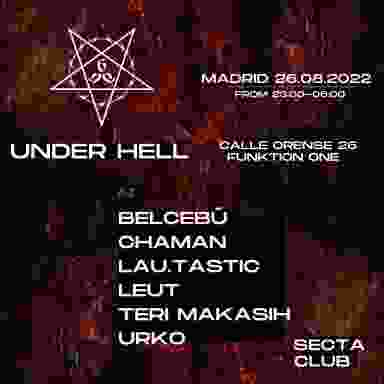 UNDER HELL y para terminar agosto les traemos un line up cargado de energia y potencia! 26 de Agosto de 2022 calle orense 26 LINE UP BELCEBÚ LAU.TASTIC TERI MAKASIH LEUT CHAMAN URKO