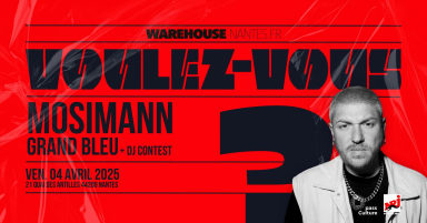 Mosimann fait son come back au Warehouse Nantes le vendredi 04 avril 2025 sur la scène 360° ! 🙌 Le DJ français fait partie du TOP 100 DJ Mag France ! Ce classement le place aux côtés de grands tels que David Guetta, Bob Sinclar ou encore DJ Snake. A l'occasion de sa tournée française "VOULEZ-VOUS", MOSIMANN fera son grand retour sur la scène 360° du Warehouse pour votre plus grand plaisir. Il ne sera pas seul car il vous a réservé une programmation secrète (on ne peut pas vous en dire plus mais ça va être louuuuuurd). 🤯 R1⤵️ ▸ MOSIMANN ▸ GRAND BLEU Interdit aux mineurs. La direction se réserve le droit d’entrée. Pièce d'identité obligatoire.