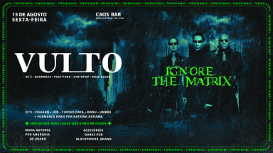 Do centro da Terra, onde a vida pode ser brutal, mas não menos divertida, que convidamos para a Vulto deste mês, com o tema Matrix, um dos maiores clássicos da ficção científica. Vestidos de couro e óculos escuros, convidamos vocês para uma comunhão regada a doses cavalares de músicas obscuras e divertidas