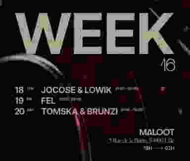WEEK 16 at Maloot TUESDAY & WEDNESDAY : Maloot Selection THURSDAY : Jocose x Lowik FRIDAY : Fel SATURDAY : Tomska x Brunzi